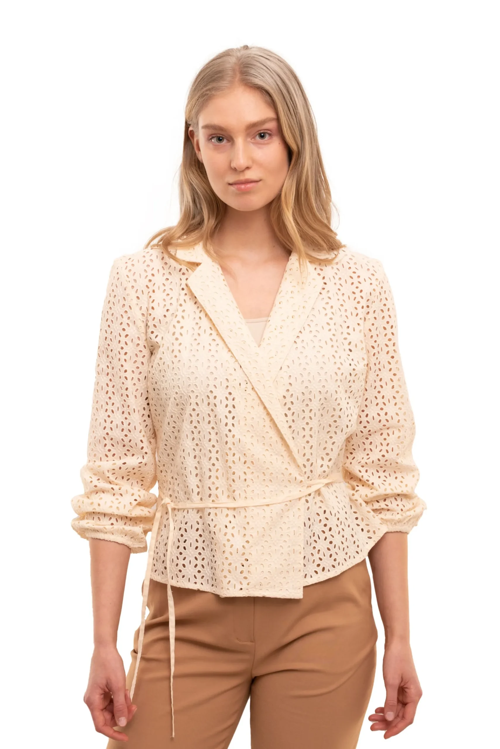 Your Face Pusero Naisille Romanttinen, Kietaisumallinen Brodeerattu Pitsipusero Paitakauluksilla. Pusero On Istuvan Mallinen Ja Hihat Ovat Rennon Pussimaiset. Puserossa On Nauhakiinnitys. Materiaalina On Napakka Puuvilla Kangas. Takapituus Koossa S On 58 Cm.