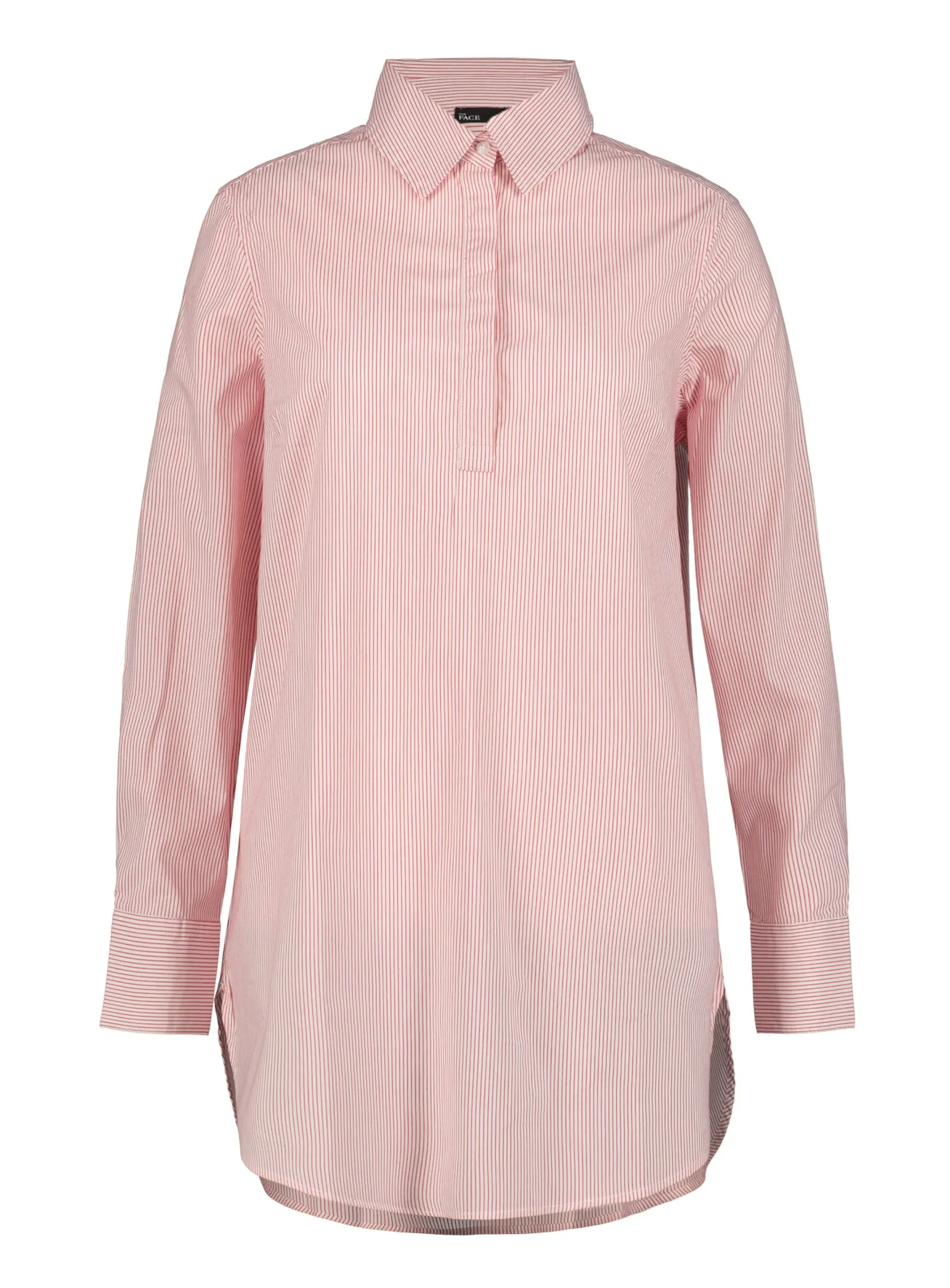 Your Face Paita Naisille Raidallinen Kauluspaita Etunappilistalla. Paita On Valjanmallinen Ja Siina On Pyoristetty Helma. Hihat Ovat Tayspitkat Ja Hihansuissa On Nappikiinnitys. Takapituus Koossa S On 86 Cm. Materiaalina On Joustava Puuvillasekoitteinen Popliini
