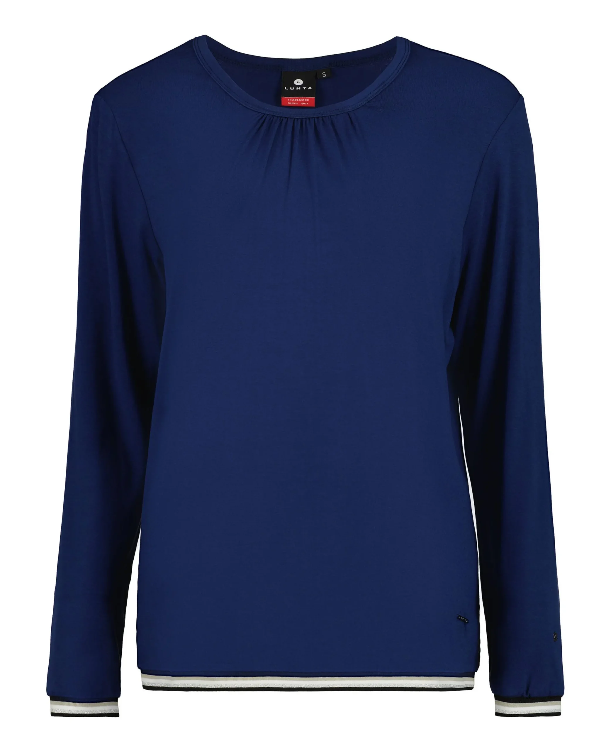 Luhta Paita Naisille Naisten Valja Pitkahihainen Trikoopaita. Luhta Hakosalmi -Paita On Tehty Joustavasta Viskoosikankaasta, Joka Tuntuu Silealta Ja Laskeutuu Kauniisti. Paidassa On Pyorea Kaula-Aukko, Jonka Etupuolella On Rypytysta. Hihansuissa Ja Helmassa On Kapeat Resorit.