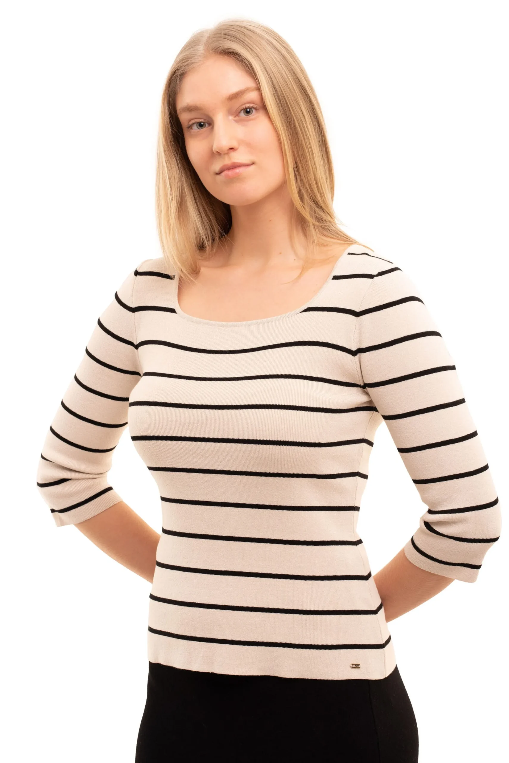 Your Face Neule Naisille Raidallinen Neulepaita Avaralla Paantiella. Paidassa On Vajaamittaiset Hihat. Materiaalina On Mukava Ja Kestava Viskoosi-Polyamidi Ribbineulos.