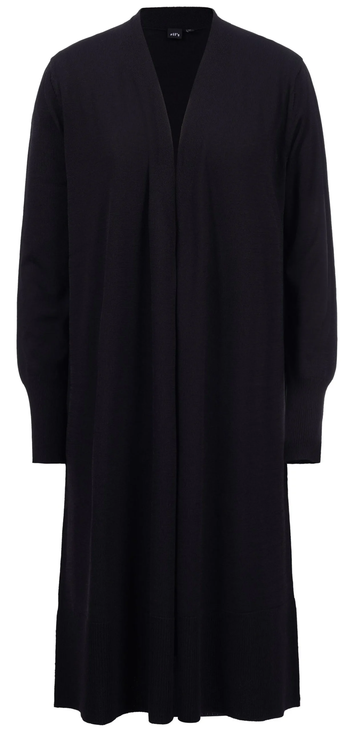 Ril’S Neuletakki Naisille Polvipituinen Ja Sileapintainen Neuletakki Tayspitkilla Hihoilla. Edesta Avoimessa, Hyvin Laskeutuvassa Neuletakissa On Suora Siluetti Ja Ryhdikas Olkalinja. Materiaalina On Ihastuttavan Viilean Tuntuinen Viskoosi-Polyamidisekoite. Takapituus On 96 Cm Koossa M.